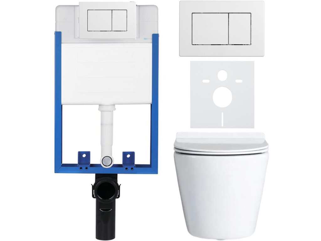 CERANO - Kompletní podomítkový WC set Lite/Norbi - bílá lesklá - WC tlačítko Classic, bílé - k zazdění - 48,5x36,5 cm