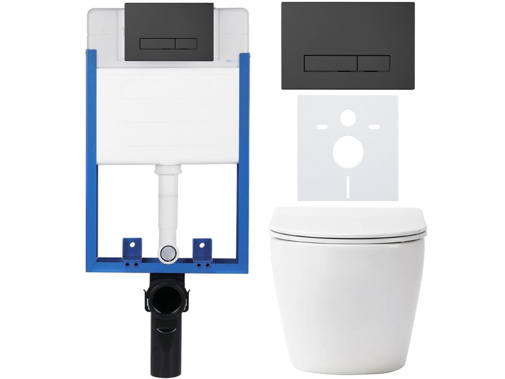 CERANO - Kompletní podomítkový WC set Lite/Verde - bílá lesklá - WC tlačítko Slim, černé matné - k zazdění - 49x36 cm