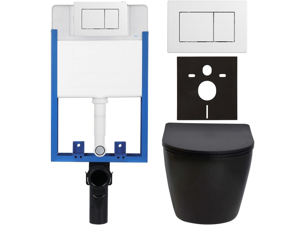 CERANO - Kompletní podomítkový WC set Lite/Verde - černá matná - WC tlačítko Classic, bílé - k zazdění - 49x36 cm