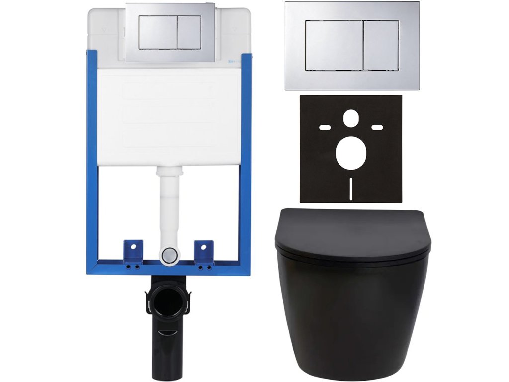 CERANO - Kompletní podomítkový WC set Lite/Verde - černá matná - WC tlačítko Classic, chrom - k zazdění - 49x36 cm