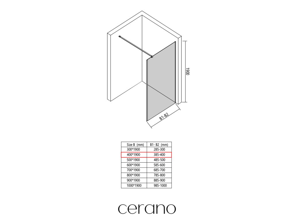 CERANO - Boční stěna Antelo L - L/P - 6 mm - černá matná, transparentní sklo - 40x190 cm - jednodílná pevná