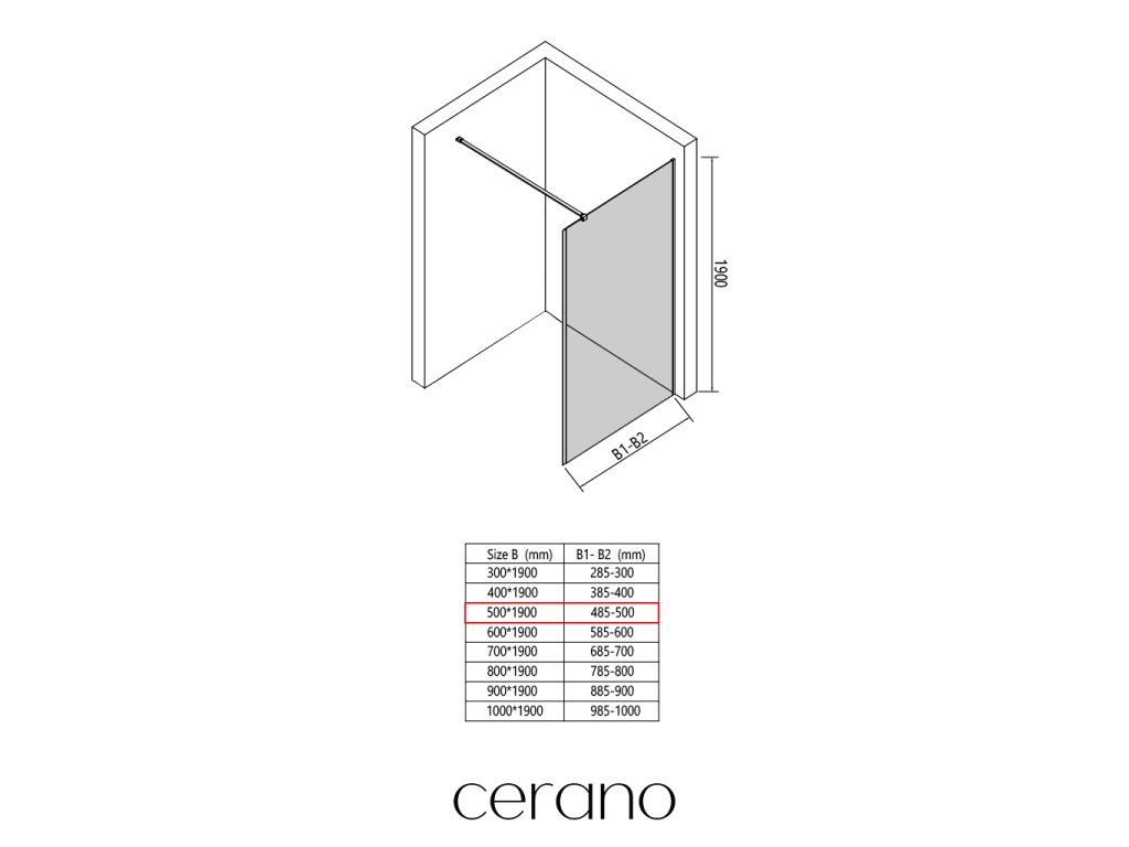 CERANO - Boční stěna Antelo L - L/P - 6 mm - černá matná, transparentní sklo - 50x190 cm - jednodílná pevná