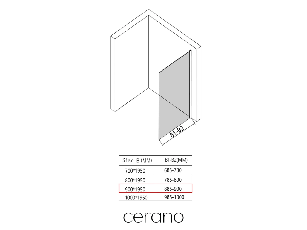 CERANO - Boční stěna Orlano L/P - 5 mm - chrom, transparentní sklo - 90x195 cm