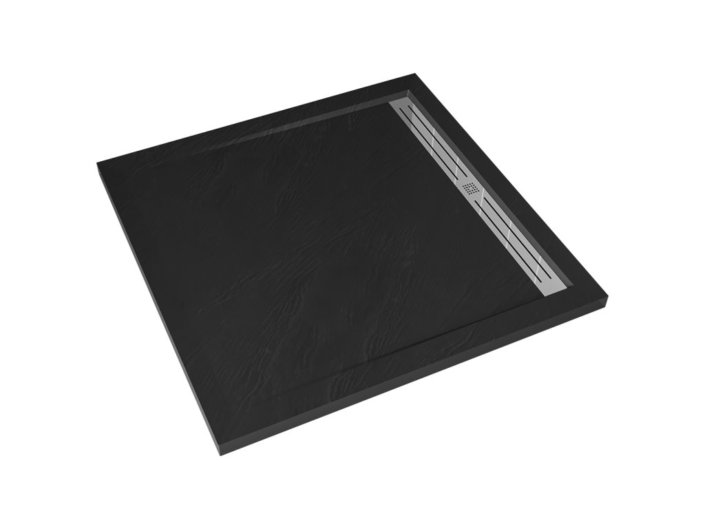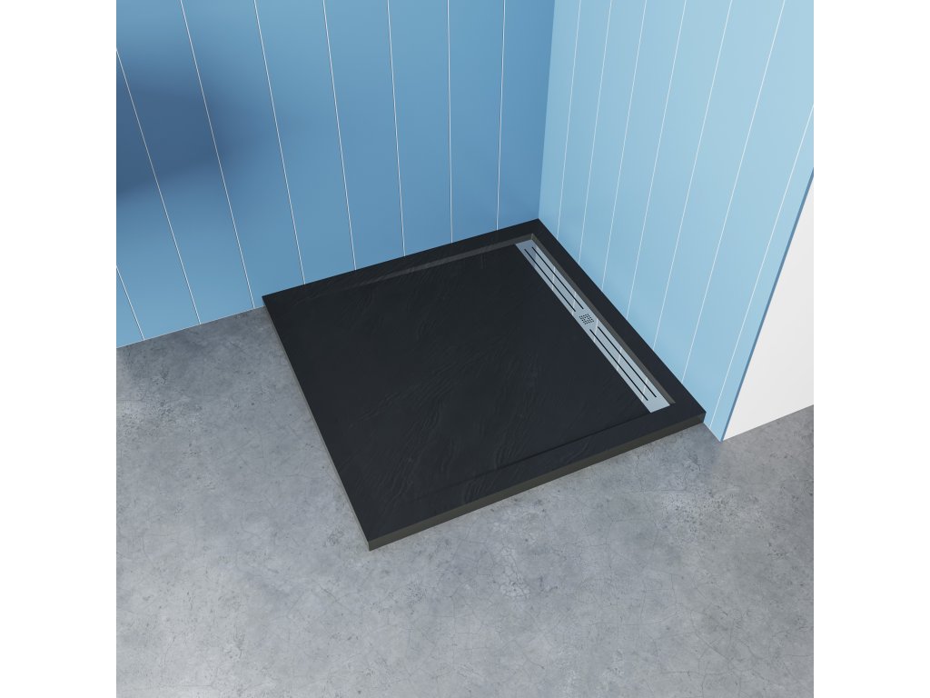 CERANO - Sprchová vanička čtvercová Docia - SMC/minerální kompozit - sifon + nerezový kryt - strukturovaná černá matná - 80x80 cm