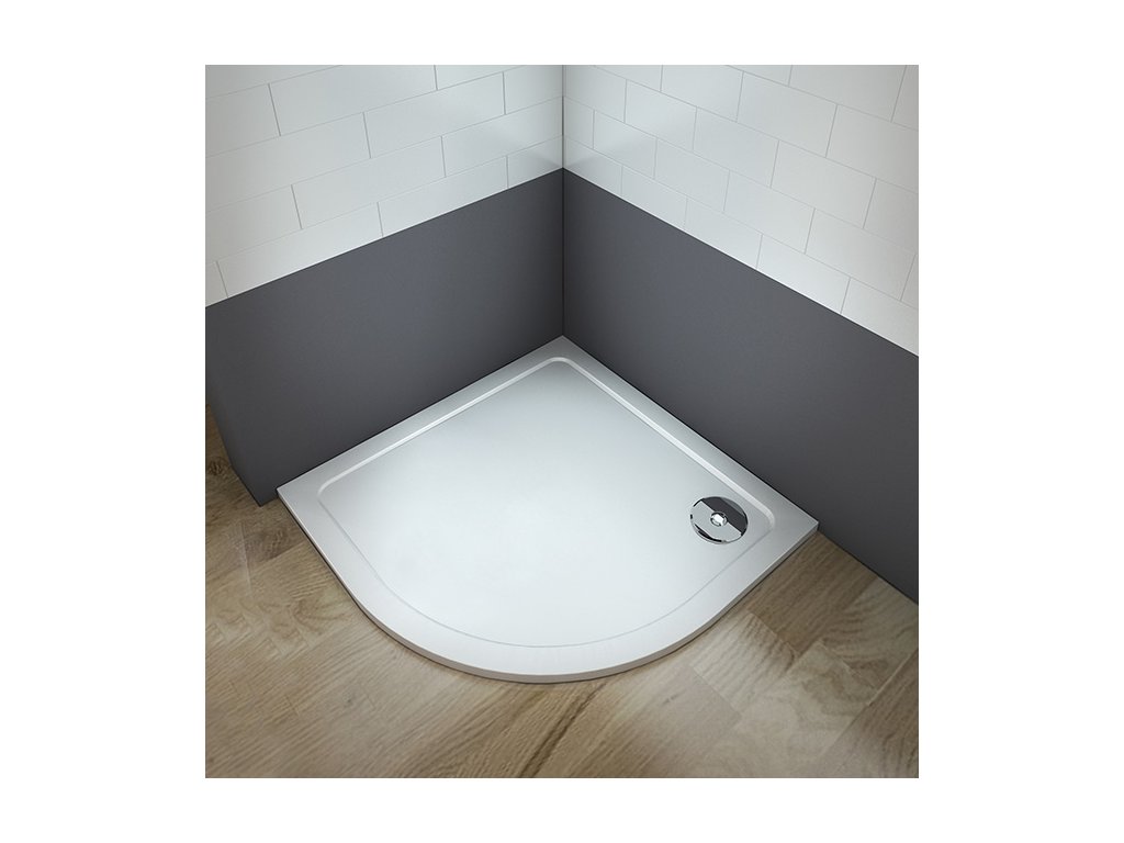 CERANO - Sprchová vanička z litého mramoru čtvrtkruhová Piato - bílá lesklá- 100x100x3 cm