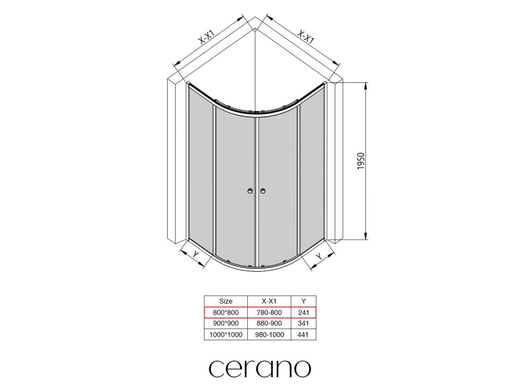 V rámci této série nabízíme tři osvědčené rozměry, které odpovídají nejčastějším požadavkům na uspořádání moderní koupelny. Tento rohový sprchový kout je navržen s důrazem na dokonalé sladění s půlkruhovými sprchovými vaničkami CERANO stejného rozměru, což usnadňuje instalaci a vytváří jednotný, harmonický vzhled. Vysoká kompatibilita zároveň eliminuje potřebu složitých úprav nebo přizpůsobení. Díky flexibilní montáži jej můžete snadno nainstalovat buď na odpovídající sprchovou vaničku, nebo přímo na připravenou podlahu s odtokovým systémem – podle vašich stavebních možností a estetických preferencí.