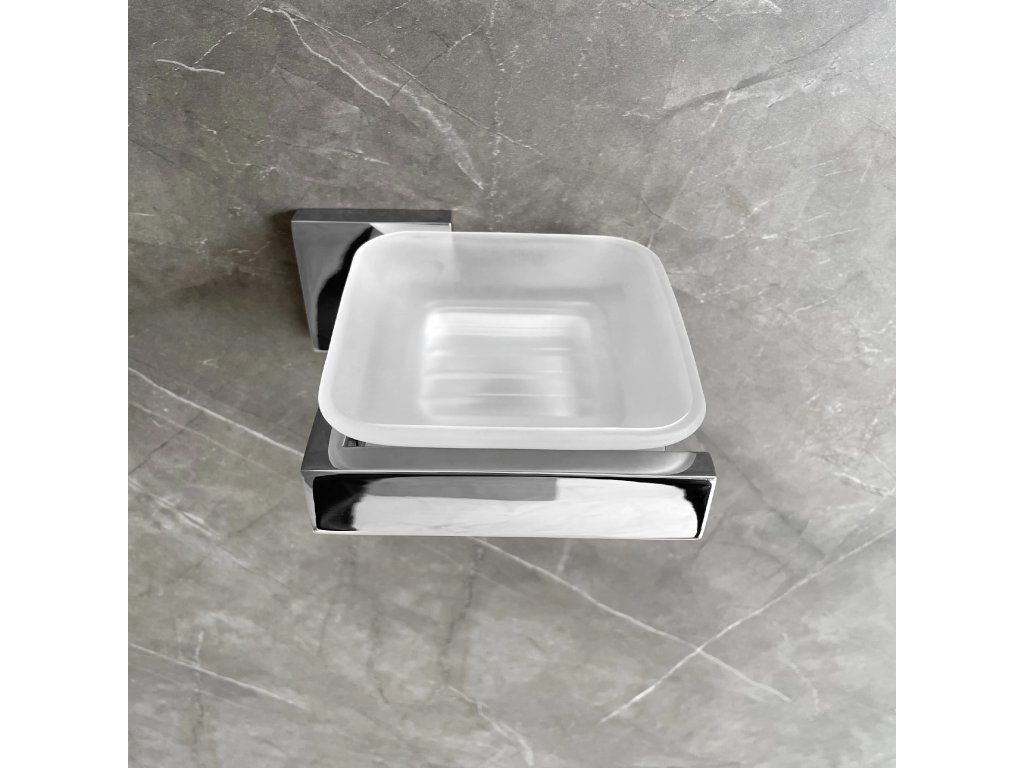 Mýdlenka se skládá z pevného držáku z nerezové oceli a čtvercové misky z tvrzeného skla, která nejen skvěle vypadá, ale také se snadno čistí. K dispozici je ve dvou barevných variantách, černá matná pro sofistikovaný vzhled nebo chrom, který dodá interiéru nadčasovou eleganci. Díky nástěnnému provedení zůstává umyvadlo vždy čisté a bez zbytečných stop po vodě či mýdle.