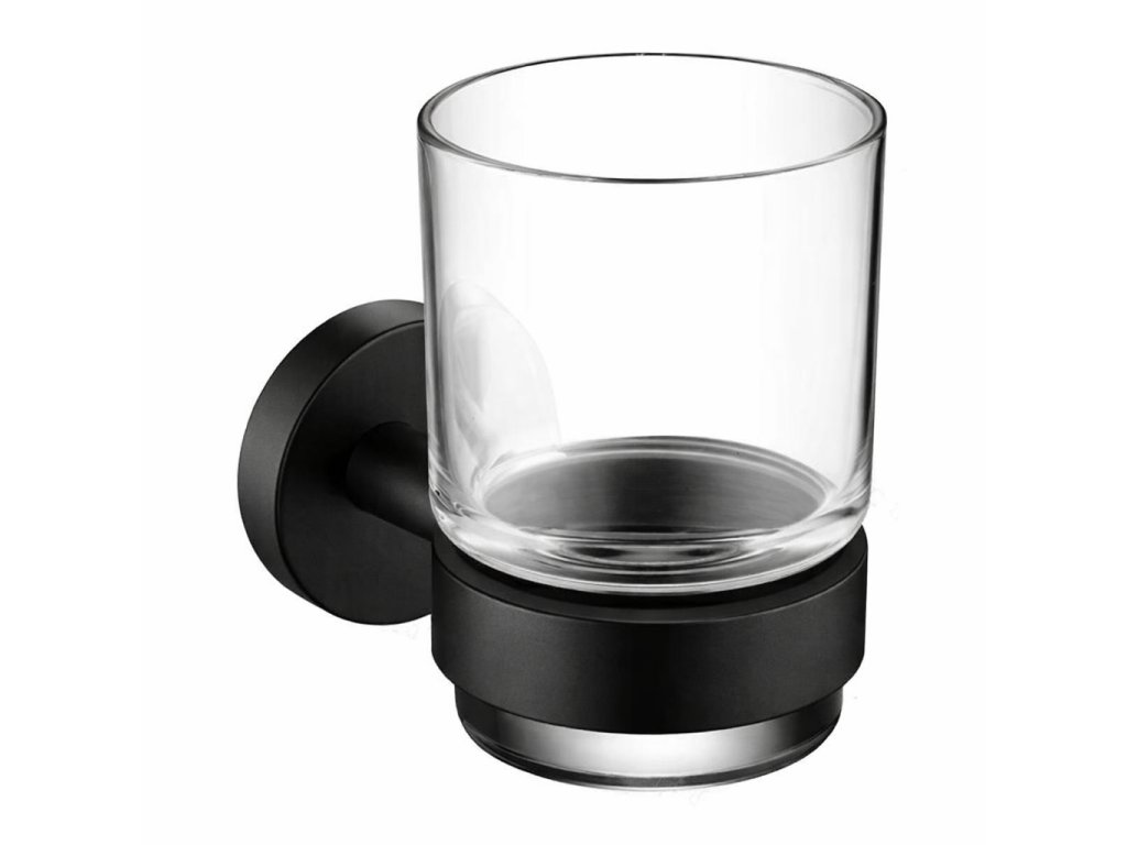 CERANO - Nástěnný držák se skleničkou Lineo - černá matná, transparentní sklo