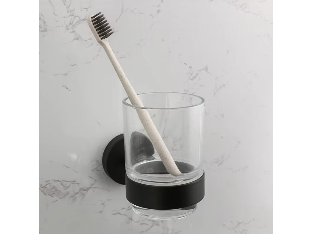 - Nástěnné držáky sklenic – možnosti pro uložení dvojice nebo jedné sklenice, ideální pro organizaci hygienických potřeb.
