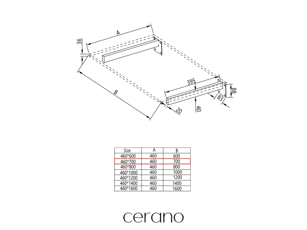 CERANO - Deska pod umyvadlo Navira Pro + 2 skryté konzole - betonově šedá - 70x46x3,6 cm