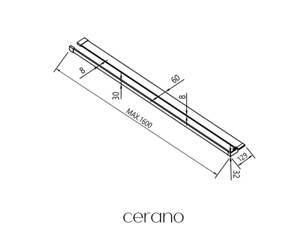 Šířku lze upravit pomocí řezu v rozmezí 30 - 160 cm, vždy dle individuálních potřeb. Výšku, ve které bude polička s držákem umístěna, si můžete zvolit dle individuálních potřeb a pro upevnění stačí pouze ukotvit do zdi. Je k dispozici v černém a chromovém provedení. Je tedy ideální pro naše sprchové zástěny značky Cerano s nimiž je kompatibilní.