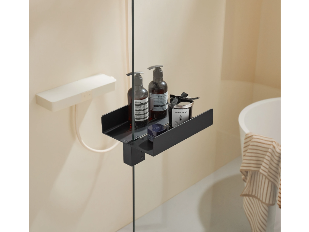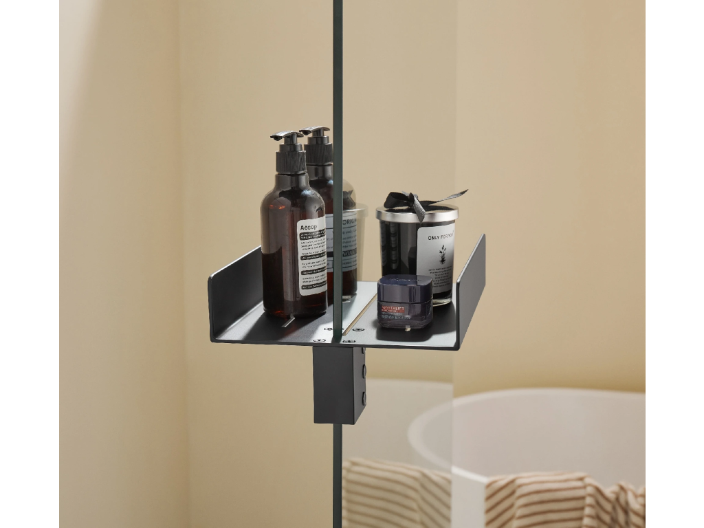 Praktický elegantní držák na ručníky zvenčí a polička zevnitř je ideální pomocník pro všechny sprchové zástěny walk-in. Lze použít pro i všechny sprchové zástěny s maximální tloušťkou skla 8mm. Je ideálním řešením minimalistických koupelen, v nichž snadno vyřeší problém s umístěním kosmetických produktů, drobného vybavení a zavěšení ručníků a osušek tak, aby vše bylo hned po ruce.