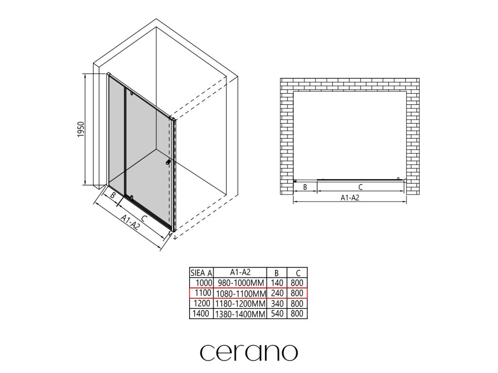 V rámci této série nabízíme širokou škálu rozměrů, abychom uspokojili různé potřeby našich zákazníků. Všechny sprchové kouty, dveře a zástěny značky CERANO jsou plně kompatibilní se sprchovými vaničkami CERANO ve stejných rozměrech, což zajišťuje bezproblémovou instalaci a dokonalé sladění. Sprchový kout lze navíc instalovat flexibilně – buď na odpovídající sprchovou vaničku, nebo přímo na podlahu podle vašich preferencí a možností koupelny.