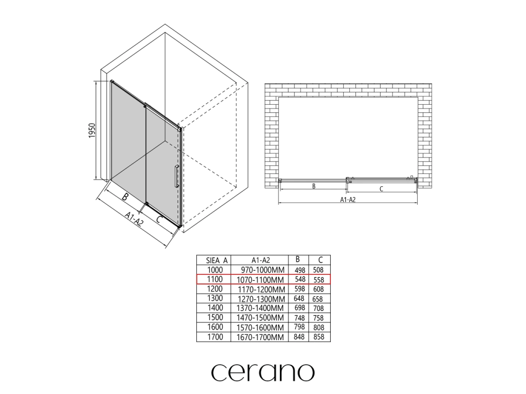 V rámci této série nabízíme širokou škálu rozměrů, abychom uspokojili různé potřeby našich zákazníků. Všechny sprchové kouty, dveře a zástěny značky CERANO jsou plně kompatibilní se sprchovými vaničkami CERANO ve stejných rozměrech, což zajišťuje bezproblémovou instalaci a dokonalé sladění. Sprchový kout lze navíc instalovat flexibilně – buď na odpovídající sprchovou vaničku, nebo přímo na podlahu podle vašich preferencí a možností koupelny.