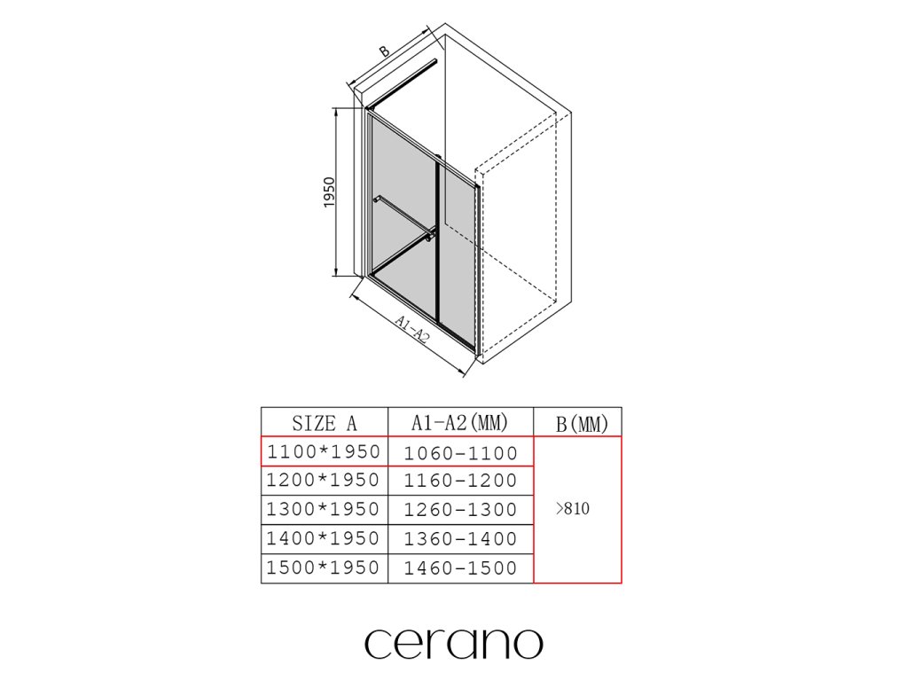 V rámci této série nabízíme širokou škálu rozměrů, abychom uspokojili různé potřeby našich zákazníků. Všechny sprchové kouty, dveře a zástěny značky CERANO jsou plně kompatibilní se sprchovými vaničkami CERANO ve stejných rozměrech, což zajišťuje bezproblémovou instalaci a dokonalé sladění. Sprchový kout lze navíc instalovat flexibilně – buď na odpovídající sprchovou vaničku, nebo přímo na podlahu podle vašich preferencí a možností koupelny.