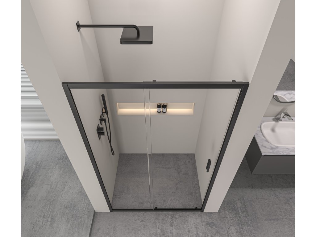 CERANO - Sprchové posuvné dveře Varone LINE L/P - 6 mm - černá matná, transparentní sklo - 130x195 cm