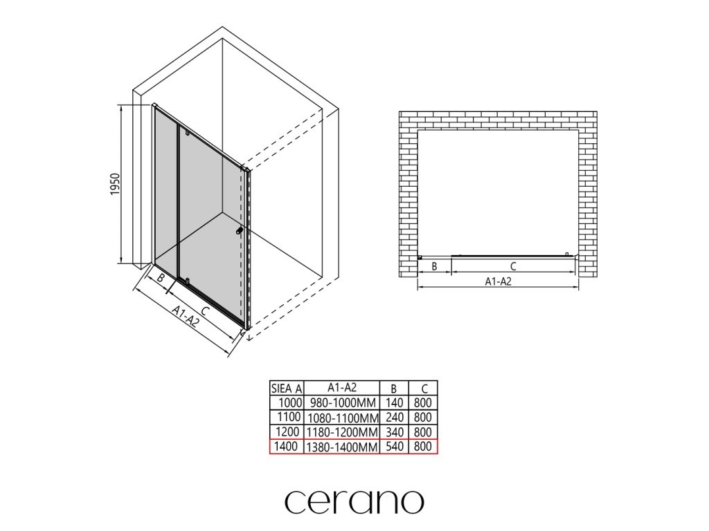 V rámci této série nabízíme širokou škálu rozměrů, abychom uspokojili různé potřeby našich zákazníků. Všechny sprchové kouty, dveře a zástěny značky CERANO jsou plně kompatibilní se sprchovými vaničkami CERANO ve stejných rozměrech, což zajišťuje bezproblémovou instalaci a dokonalé sladění. Sprchový kout lze navíc instalovat flexibilně – buď na odpovídající sprchovou vaničku, nebo přímo na podlahu podle vašich preferencí a možností koupelny.
