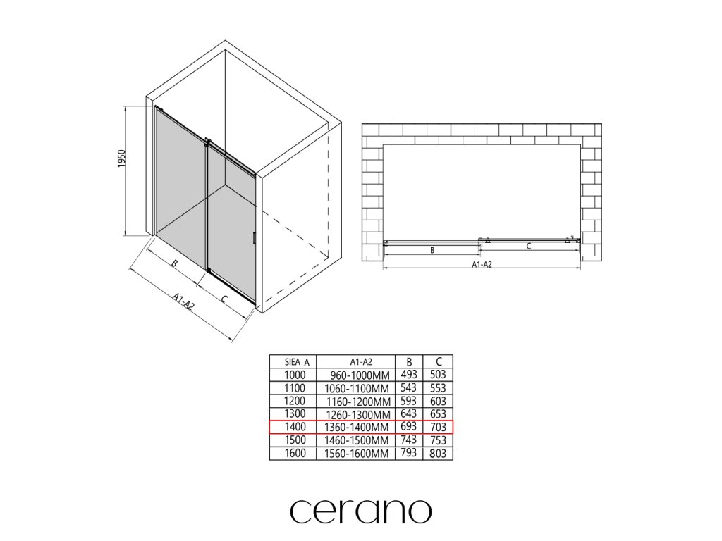 V rámci této série nabízíme širokou škálu rozměrů, abychom uspokojili různé potřeby našich zákazníků. Všechny sprchové kouty, dveře a zástěny značky CERANO jsou plně kompatibilní se sprchovými vaničkami CERANO ve stejných rozměrech, což zajišťuje bezproblémovou instalaci a dokonalé sladění. Sprchový kout lze navíc instalovat flexibilně – buď na odpovídající sprchovou vaničku, nebo přímo na podlahu podle vašich preferencí a možností koupelny.