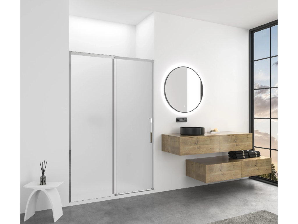 CERANO - Sprchové posuvné dveře Lantono - levá - 8 mm - Soft-Close - chrom, mléčné sklo - 150x195 cm