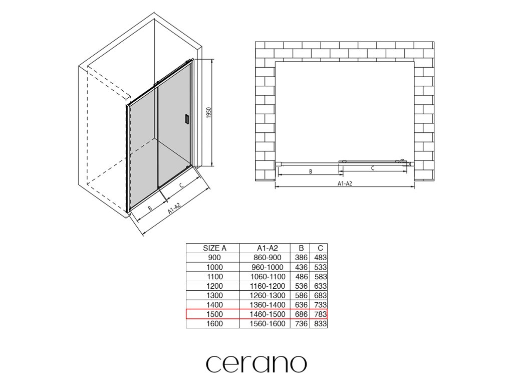 V rámci této série nabízíme širokou škálu rozměrů, abychom uspokojili různé potřeby našich zákazníků. Všechny sprchové kouty, dveře a zástěny značky CERANO jsou plně kompatibilní se sprchovými vaničkami CERANO ve stejných rozměrech, což zajišťuje bezproblémovou instalaci a dokonalé sladění. Sprchový kout lze navíc instalovat flexibilně – buď na odpovídající sprchovou vaničku, nebo přímo na podlahu podle vašich preferencí a možností koupelny.