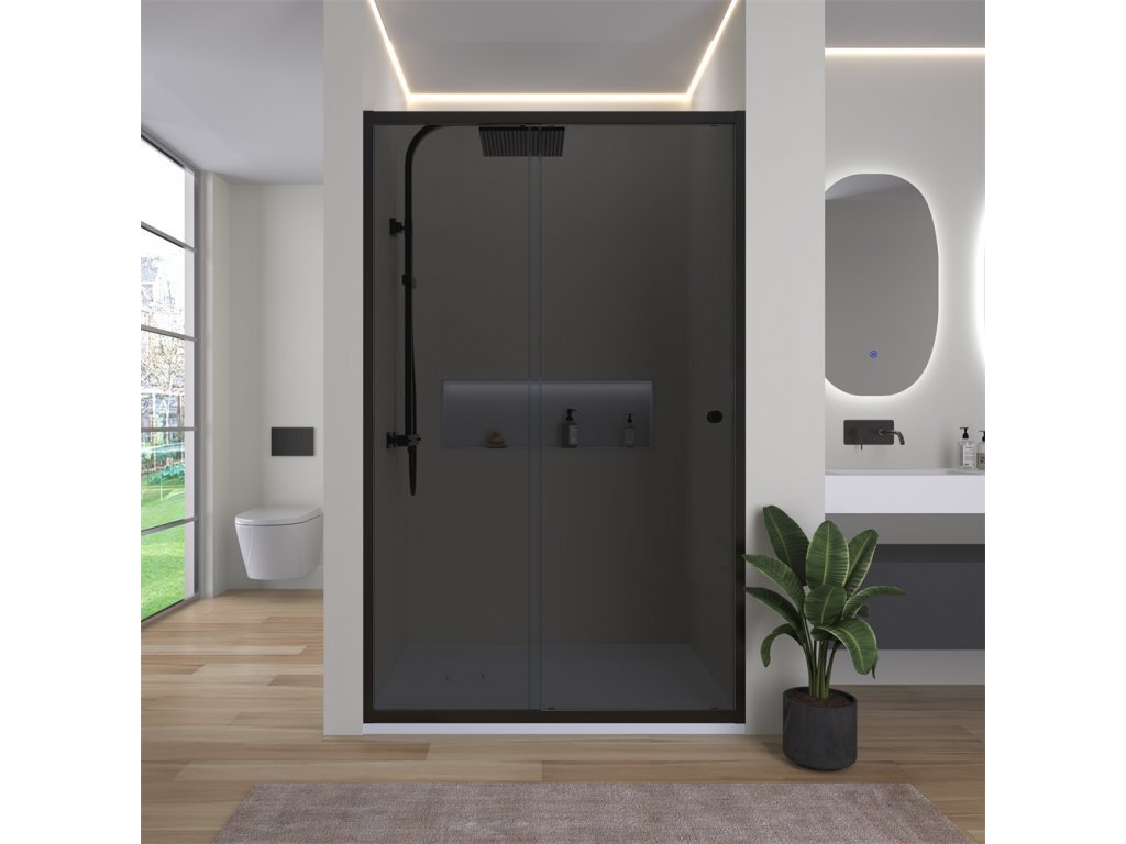 CERANO - Sprchové posuvné dveře Varone POINT L/P - 6 mm - černá matná, grafitové sklo - 160x195 cm