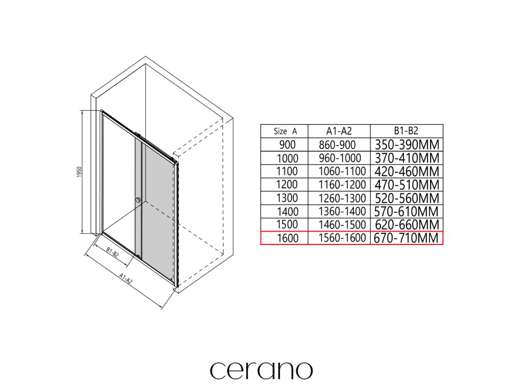 V rámci této série nabízíme širokou škálu rozměrů, abychom uspokojili různé potřeby našich zákazníků. Všechny sprchové kouty, dveře a zástěny značky CERANO jsou plně kompatibilní se sprchovými vaničkami CERANO ve stejných rozměrech, což zajišťuje bezproblémovou instalaci a dokonalé sladění. Sprchový kout lze navíc instalovat flexibilně – buď na odpovídající sprchovou vaničku, nebo přímo na podlahu podle vašich preferencí a možností koupelny.