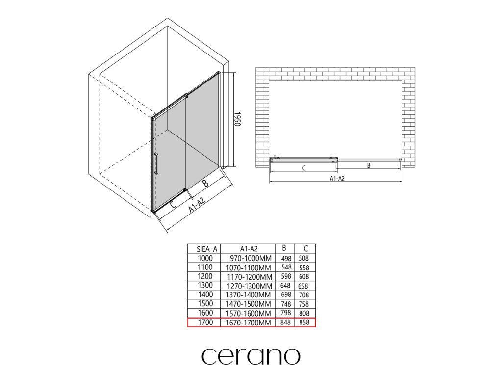 V rámci této série nabízíme širokou škálu rozměrů, abychom uspokojili různé potřeby našich zákazníků. Všechny sprchové kouty, dveře a zástěny značky CERANO jsou plně kompatibilní se sprchovými vaničkami CERANO ve stejných rozměrech, což zajišťuje bezproblémovou instalaci a dokonalé sladění. Sprchový kout lze navíc instalovat flexibilně – buď na odpovídající sprchovou vaničku, nebo přímo na podlahu podle vašich preferencí a možností koupelny.