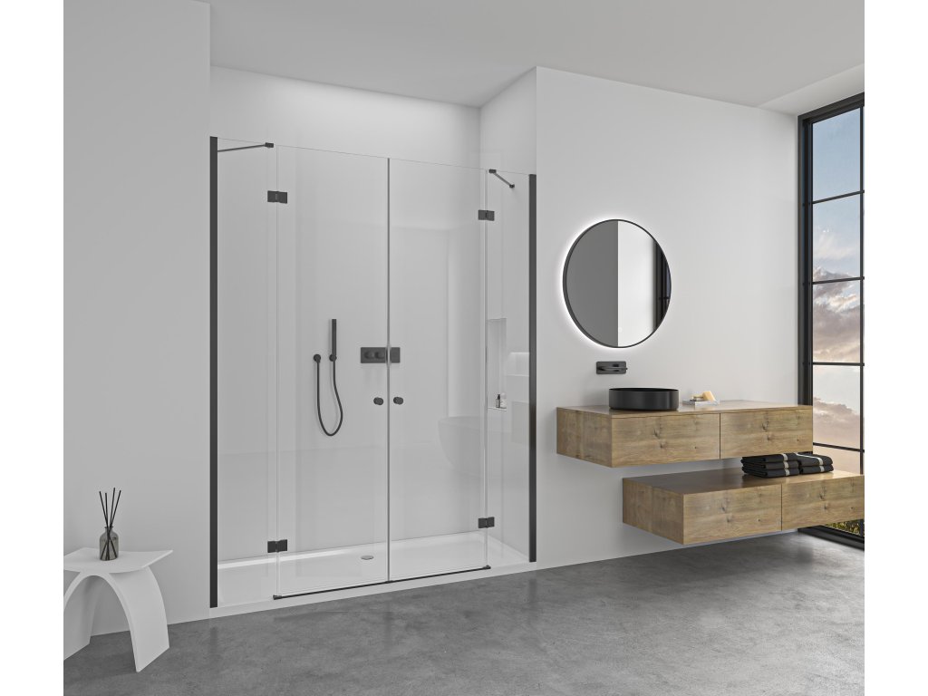 CERANO - Sprchové 2-křídlové pantové dveře Marino L/P - 6 mm - černá matná, transparentní sklo - 208(119+89)x190 cm
