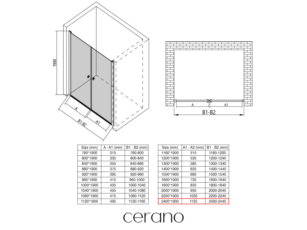 V rámci této série nabízíme širokou škálu rozměrů, abychom uspokojili různé potřeby našich zákazníků. Všechny sprchové kouty, dveře a zástěny značky CERANO jsou plně kompatibilní se sprchovými vaničkami CERANO ve stejných rozměrech, což zajišťuje bezproblémovou instalaci a dokonalé sladění.