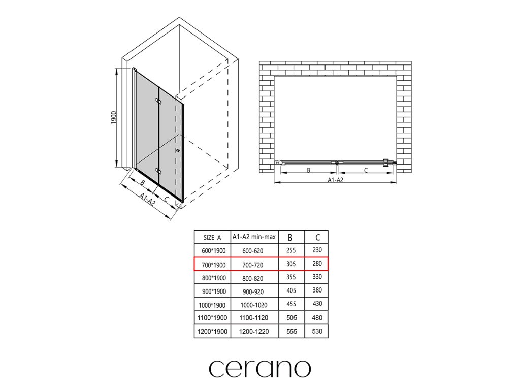 V rámci této série nabízíme širokou škálu rozměrů, abychom uspokojili různé potřeby našich zákazníků. Všechny sprchové kouty, dveře a zástěny značky Cerano jsou plně kompatibilní se sprchovými vaničkami Cerano ve stejných rozměrech, což zajišťuje bezproblémovou instalaci a dokonalé sladění. Sprchový kout lze navíc instalovat flexibilně – buď na odpovídající sprchovou vaničku, nebo přímo na podlahu podle vašich preferencí a možností koupelny.