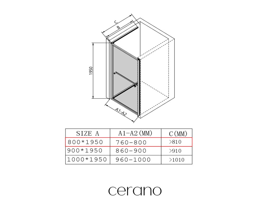 V rámci této série nabízíme širokou škálu rozměrů, abychom uspokojili různé potřeby našich zákazníků. Všechny sprchové kouty, dveře a zástěny značky CERANO jsou plně kompatibilní se sprchovými vaničkami CERANO ve stejných rozměrech, což zajišťuje bezproblémovou instalaci a dokonalé sladění. Sprchový kout lze navíc instalovat flexibilně – buď na odpovídající sprchovou vaničku, nebo přímo na podlahu podle vašich preferencí a možností koupelny.