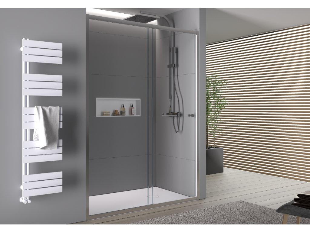 Díky nastavitelnému stěnovému profilu s rozsahem až 40 mm snadno přizpůsobíte sprchové dveře i v případě menších nerovností stěn nebo odchylek ve stavebním otvoru. Tento chytrý systém usnadňuje instalaci a zajišťuje dokonalé dosednutí dveří. Možnost nastavení platí pouze pro dveře – pevná zástěna se montuje v pevném rozměru.