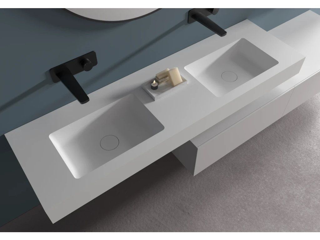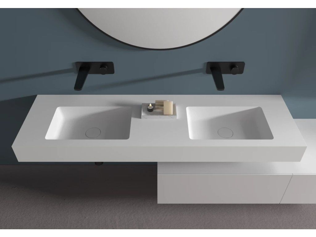 CERANO - Dvojumyvadlo z litého mramoru Geminia - nástěnné - bílá matná - 133x45 cm