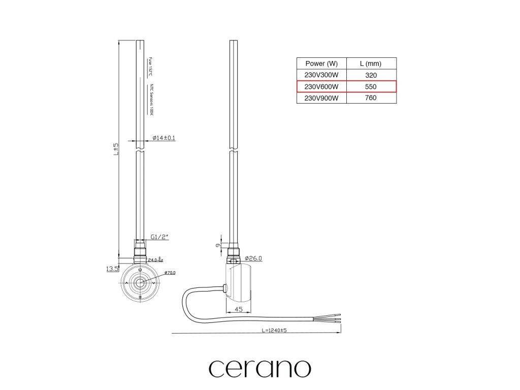 - Délka topného tělesa: 320 / 550 / 760 mm