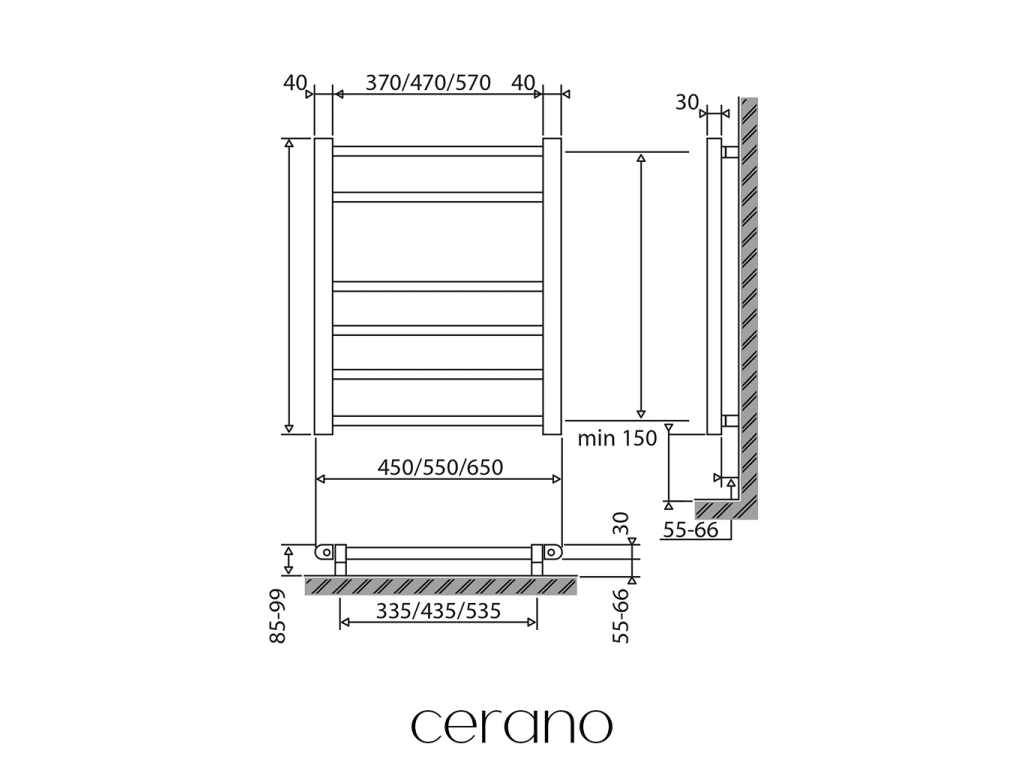 CERANO - Elektrický sušák ručníků Domenico - 97 W - bílá lesklá - 660x550 mm