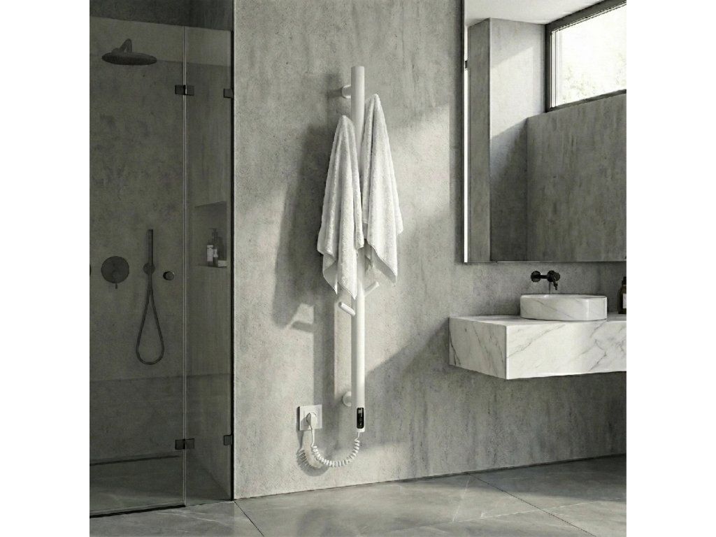 CERANO - Elektrický sušák ručníků Ramus, s displejem - 160W - bílá matná - 1400x30 mm