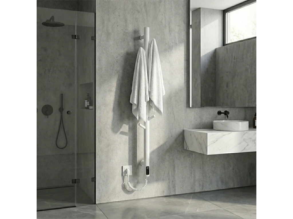 CERANO - Elektrický sušák ručníků Ramus, s displejem - 160W - bílá strukturovaná perleť - 1400x30 mm