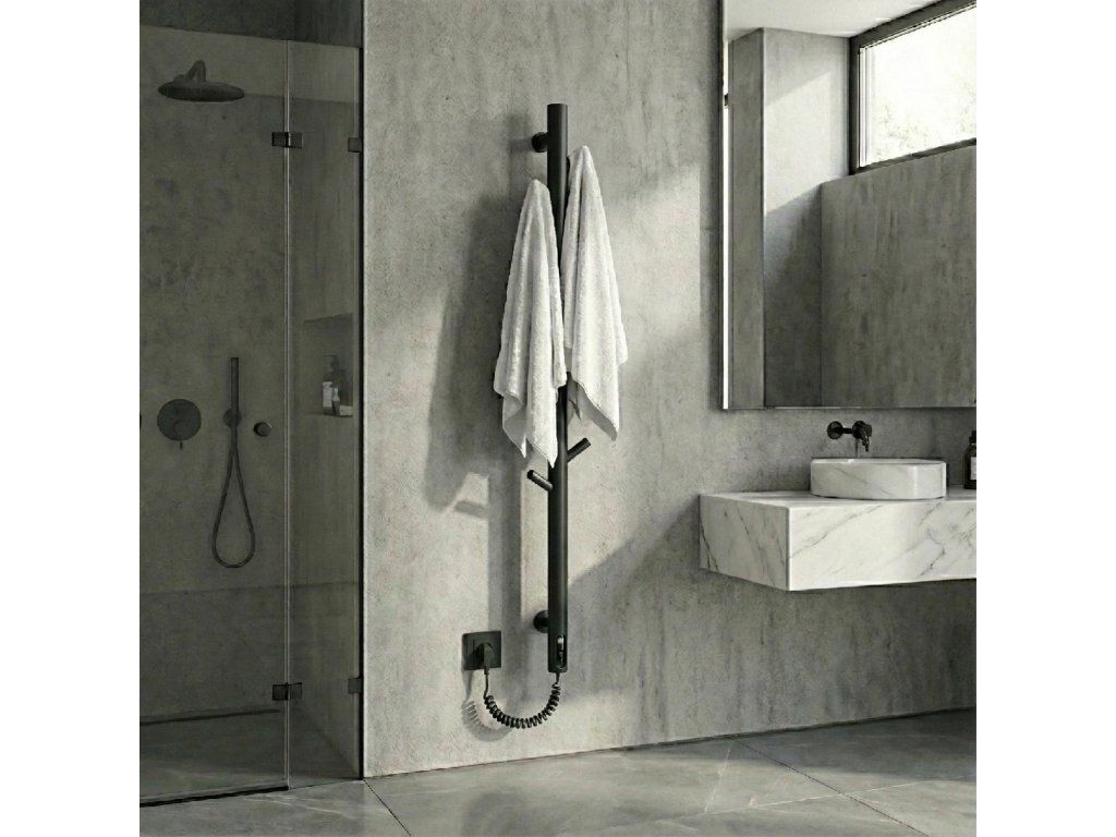 CERANO - Elektrický sušák ručníků Ramus, s displejem - 160W - černá strukturovaná matná - 1400x30 mm