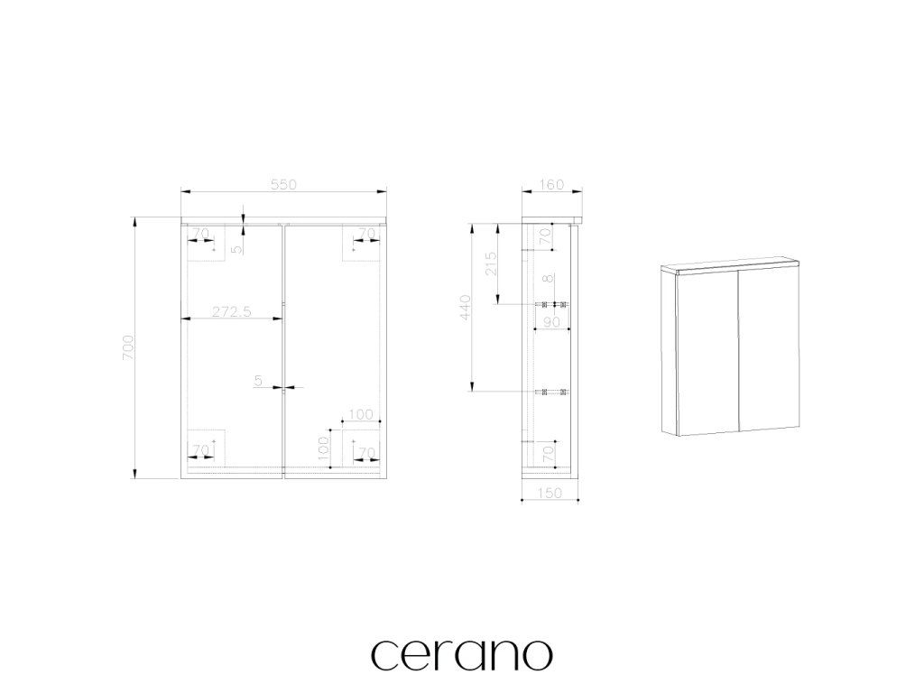 CERANO - Koupelnová zrcadlová skříňka s LED osvětlením Avia - bílá matná - 55x70x16,5 cm