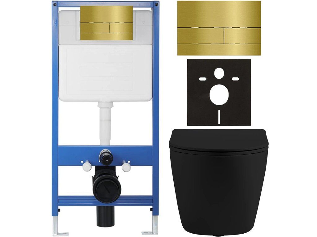 CERANO - Kompletní podomítkový WC set Lite/Cesso - černá matná - WC tlačítko Line. zlatá - předstěnová instalace - 49x36 cm