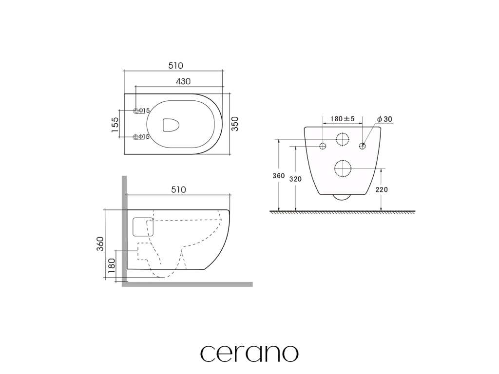 Závěsné WC mísy Cerano se snadno montují a díky standartní rozteči uchycení ,jsou kompatibilní s moduly Cerano ,tak i od značek jako Geberit, Grohe, Alcadrain , Jika, Tece aj.