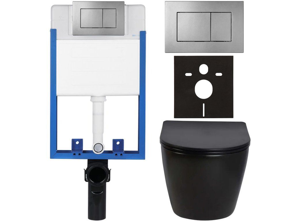 CERANO - Kompletní podomítkový WC set Lite/Verde - černá lesklá - WC tlačítko Classic, tmavě šedá - k zazdění - 49x36 cm