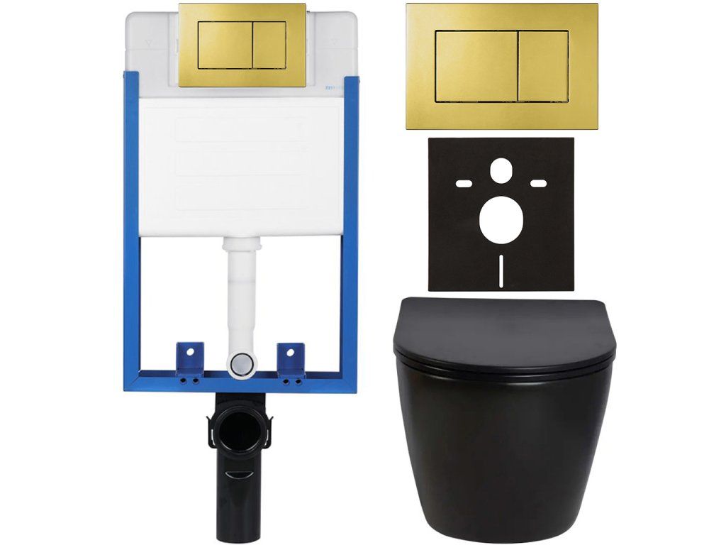 CERANO - Kompletní podomítkový WC set Lite/Verde - černá lesklá - WC tlačítko Classic, zlatá - k zazdění - 49x36 cm