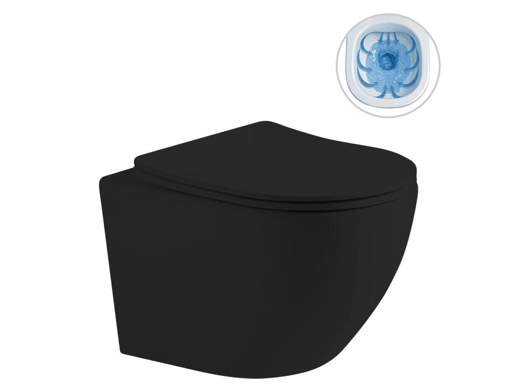 WC mísy s tímto systémem nemají horní obvodovou hranu (tzv.rim). Voda je rozváděna rovnoměrně kolem celé mísy, což umožňuje efektivní spláchnutí s výrazně menším množstvím vody. Díky nepřítomnosti horního okraje, který mají starší typy wc , jsou přístupnější všechny části mísy pro čištění a nedochází k akumulaci nečistot a bakterií, což přispívá k lepší hygieně.