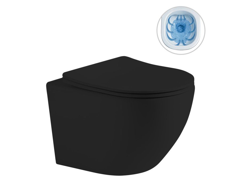 CERANO - Kompletní podomítkový WC set Lite/Verde - černá matná - WC tlačítko Slim, tmavě šedá - k zazdění - 49x36 cm