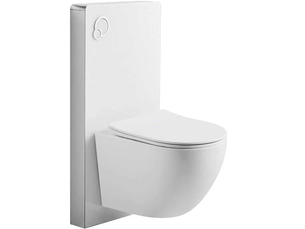 CERANO - Kompletní WC set sanitární splach. modul - bílá matná + WC závěsné Cesso, Vortex Rimless + Slim/UF sedátko - bílá matná - 49x36 cm