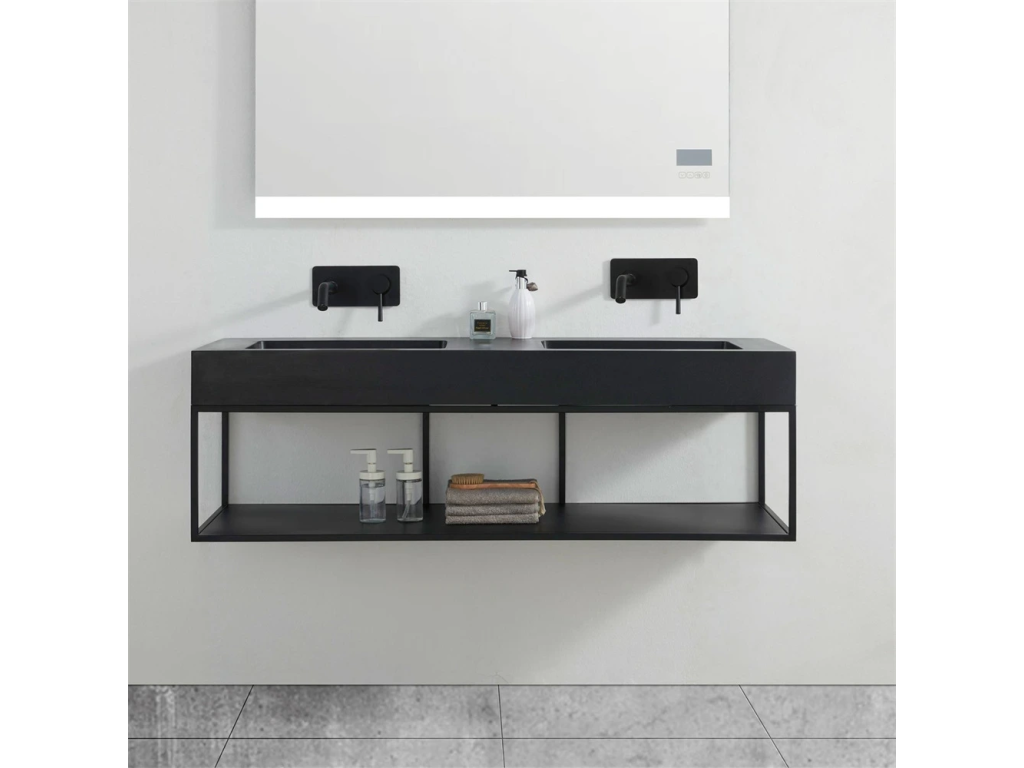 Konzole je svařená dohromady, takže není třeba žádná montáž, produkt je "v jednom kuse". Je vyrobena z pevné oceli s práškovým nástřikem v černé matné barvě. Tím je zajištěna dlouhá životnost, odolnost vůči vlhkosti a efektní designový vzhled. Disponuje velkým úložným prostorem, který je ideální využít k uložení ručníků, osušek a jiných koupelnových doplňků, které chcete mít po ruce.