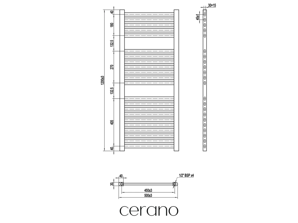 Standartní připojení radiátoru je 1/2" , což zajišťuje kompatibilitu s ventily a přípojnými sadami Cerano ,i od jiných výrobců. Ujistěte se, že všechny součásti odpovídají tomuto průměru, aby byl zajištěn bezpečný a efektivní provoz.