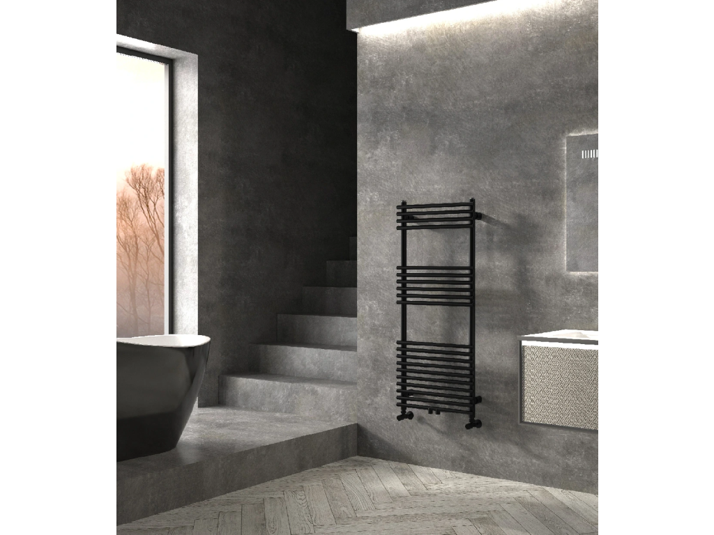 CERANO - Koupelnový radiátor Luigi - středové připojení 50mm/boční - 545W - černá matná - 1200x500 mm