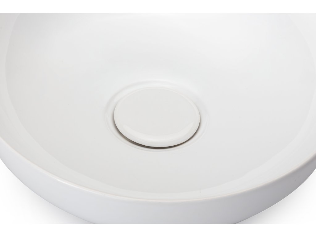 Součástí umyvadla je také keramická zátka, která nejen skvěle doplňuje celkový vzhled, ale také zajišťuje plynulý odtok vody a minimalizuje přítomnost nepříjemných pachů. Velkou výhodou je snadné čištění a vysoká odolnost vůči nejrůznějším čistícím prostředkům a chemikáliím.